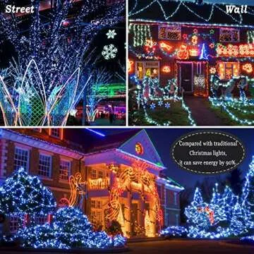 Show moreTransform your outdoor space into a dazzling winter wonderland with the KNONEW Outdoor Christmas Lights. Featuring a robust design that boasts an impressive 500 LED lights along a generous 197ft length, including a lead cable of 10ft, these lights are tailored to meet your decorating needs, whether you’re celebrating Christmas, Thanksgiving, weddings, or Valentine’s Day. Their extended length ensures you have plenty of wire to envelop large areas, giving your home a festive glow that captures the spirit of the season. These lights also allow for creative arrangements, from draping them around your porch to wrapping them around trees, reminiscent of twinkling summertime stars that illuminate nights with warmth and charm.
