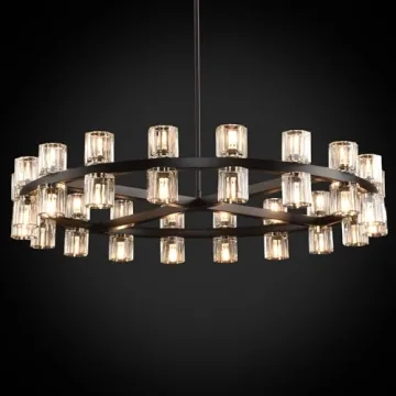 Show moreIntroducing the stunning Knurldon Modern 36" Black Round Chandelier, a captivating centerpiece that perfects the balance between modern elegance and farmhouse charm. This exquisite light fixture is designed with a matte black metal body that beautifully contrasts with its double head clear 100% K9 crystal shades. Its bold 36-inch diameter makes it an eye-catching addition, whether in your dining room, living area, or foyer, turning any space into a stunning showcase of sophistication and style.