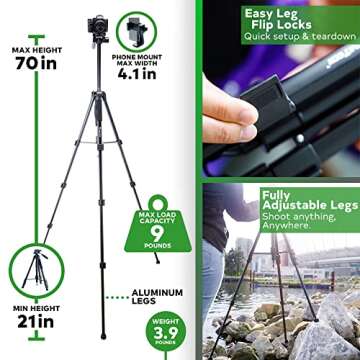 KobraTech 70 Inch Tripod for Camera and Phone | Apex A70 Camera Tripod with Remote and Monopod | Aluminum Camera Tripod for Nikon, Canon, iPhone | Includes Phone Tripod Mount