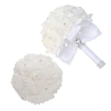 When compared to other bridal bouquets, the KOCNYDEY Wedding Bouquet excels due to its elegant design and high-quality materials at a competitive price point. While many artificial bouquets fall flat in quality or aesthetics, this bouquet delivers both charm and durability. The added touch of rhinestones creates an eye-catching detail that sets it apart, ensuring you shine on your special day.