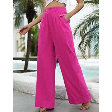 Kocowoo Linen Wide Leg Dress Pants for Women High Waisted Palazzo Pants Casual Lounge Beach Trousers with Pocket