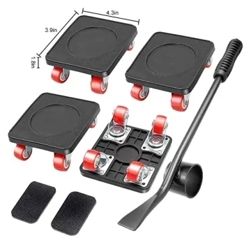 Transform your moving experience with the Kocuos Heavy-Duty Moving Dolly Set, designed to effortlessly transport heavy furniture and appliances across various surfaces. This set includes 4 robust dollies, each equipped with 4 ball-bearing swivel casters for smooth, multidirectional movement, ensuring stability even on uneven terrain. The solid, durable wheels support up to 880 lbs, making it an ideal choice for heavy-duty tasks. The anti-skid design of the wheels ensures your furniture stays securely in place...