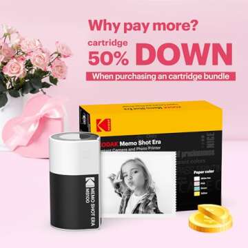 KODAK Memo Shot ERA Kids Instant Digital Camera and Photo Label Printer (White, Camera + 10 Rolls)
