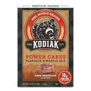 Show moreIntroducing Kodiak Cakes Protein Pancake Power Cakes – a delightful blend of nutrition and flavor that transforms your breakfast routine into a guilt-free indulgence. Each 18-ounce box (Pack of 6) delivers the heartwarming taste of dark chocolate while delivering an impressive punch of protein with 14g per serving, ensuring you and your family start the day with energy and satisfaction. Made with wholesome ingredients, including whole wheat and oat flours, these pancakes are not only delicious but also crafted to suit a variety of dietary needs such as Non-GMO and versatile for multiple recipes.