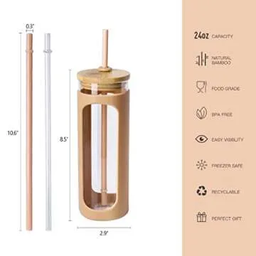 Show more Introducing the Kodrine 24 oz Glass Water Bottle, an elegant blend of style and functionality designed for the conscious drinker! Crafted with premium borosilicate glass, this water bottle is built to withstand both hot and cold temperatures, making it perfect for your morning tea or ice-cold lemonade. The sophisticated bamboo lid not only adds a touch of natural elegance but also prevents leaks and spills, ensuring that your favorite beverages stay securely in place while you’re on the go.