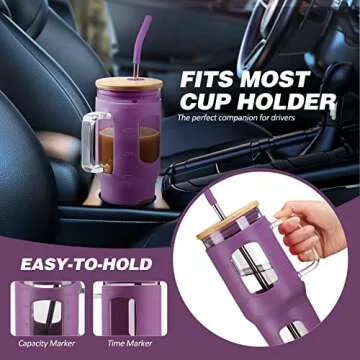 The Kodrine tumbler’s distinct T-shape makes it a seamless fit for most cup holders, ensuring that you can take your hydration journey from home to car effortlessly. Its generous wide mouth opening simplifies both filling and cleaning, allowing you to add ice, fruits, or infused ingredients easily. Enjoy a beautifully transparent view of your drinks, enhanced by a silicone sleeve that provides added durability and protection against accidental drops.