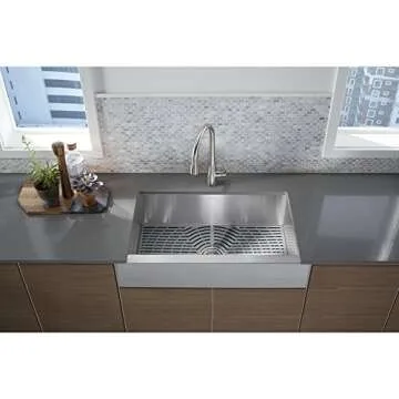 Kohler K-20243-PC-NA Sterling Ludington 34" Under-Mount Single-Bowl Farmhouse Kitchen Sink with Accessories, Apron-Front Basin, Stainless Steel