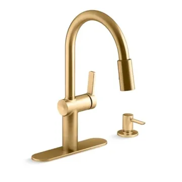The Kohler Koi Pull-Down Kitchen Faucet is not just another fixture—it's a statement piece crafted to elevate your kitchen aesthetics and functionality. This stunning faucet, coated in a vibrant brushed moderne brass finish, seamlessly integrates elegance and performance. With its sleek design, it brings a sophisticated golden touch to any kitchen space, making it perfect for traditional and modern styles alike.
