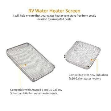 The screens are designed to fit most standard RV water heater and furnace vents, with size options included.