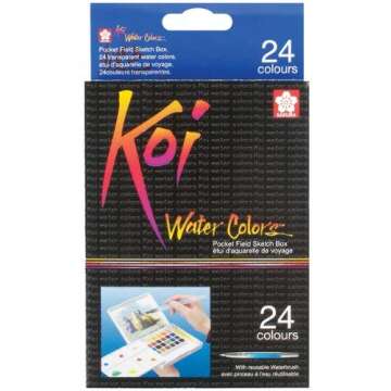 If you have a passion for painting and enjoy capturing the beauty of the world around you, the Koi Water Colors Pocket Field Sketch Box is your perfect companion. Designed for artists of all skill levels, this portable set includes 24 vibrant watercolors that blend effortlessly for stunning results. The compact and lightweight design allows you to take your artistry on the go, whether you're in the studio or out in nature. With a built-in mixing palette and a high-quality brush, you have everything you need...