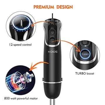 KOIOS 800-Watt/ 12-Speed Immersion Hand Blender(Titanium Reinforced), Turbo for Finer Results, 4-in-1 Set Includes BPA-Free Food Chopper / Egg Beater / Beaker, Ergonomic Grip, Detachable
