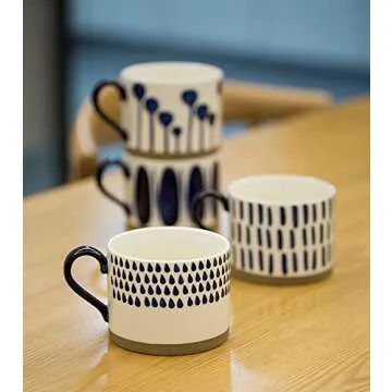 Koja 15 oz. Elegant Hand Painted Decorative Large Porcelain Ceramic Mug Set. 4 Decorative Mugs. Colorful Gift Pack. Impress & Entertain Family & Guests. Dishwasher Microwave Safe.