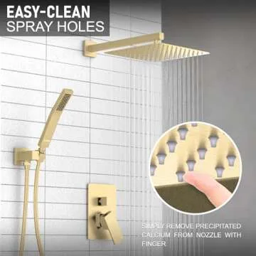 KOJOX Shower System Bathroom Luxury 12 Inch Rain Shower Head with Handheld Mixer Shower Combo Set Wall Mounted Shower Faucet Trim with Valve Brush Gold