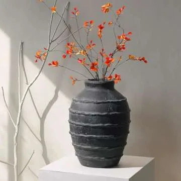 Kokrose Black Terracotta Vase, Black Vases Home Decor for Centerpieces, Large Vintage Rustic Flower Vase for Home Decor, Pottery Ceramic Vases, Table Top Fireplace Mantel Decor