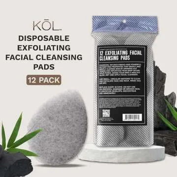 KOL Face Scrubber, Charcoal Infused Exfoliating Facial Cleansing Pads, Disposable Exfoliator Face Sponge for Daily Cleaning and Makeup Removal, 12 Count