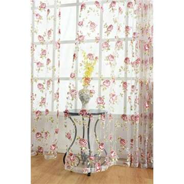 Show more Transform any space into a haven of elegance with these stunning Sheer Pink Rose Voile Curtains. Crafted from high-quality transparent voile tulle fabric, these curtains are designed to enhance your home while ensuring optimal airflow. The smooth and breathable material allows natural light to gently filter through, creating a warm and inviting atmosphere.
