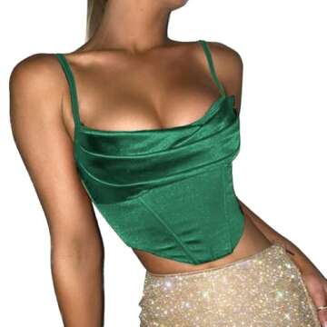 Kolagri Cami Bustiers Crop Tops for Women Satin Fishbone Smocker Zip Back Y2k Fashion Party Rave Clubwear Slim Fitted Corset Green L