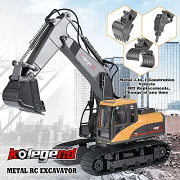 kolegend 3 in 1 RC Excavator 15 Channel with Grab Drill Metal Shovel, 1/14 Remote Control Construction Vehicles Tractor, 2.4Ghz Boy Toy Gift for Kids and Adults