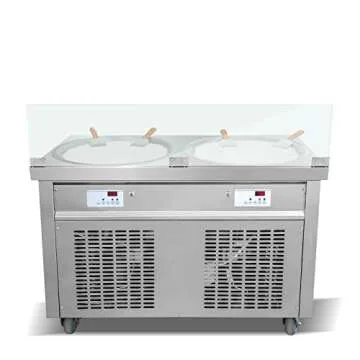 Kolice Commercial ETL NSF UL 55cm 22" Double Round Pans Fried Ice Cream Roll Machine, Yogurt Fry ice Cream Machine - Auto Defrost, Transparent Sneeze Guard