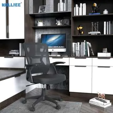 KOLLIEE Mid Back Mesh Office Chair Ergonomic Swivel Black Mesh Computer Chair Flip Up Arms with Lumbar Support Adjustable Height Task Chair