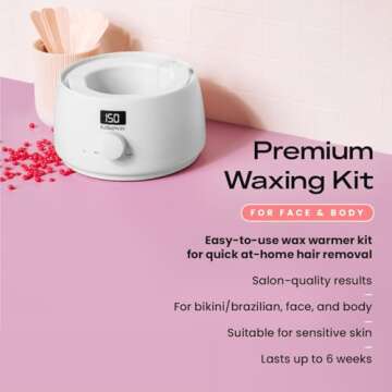 Show more The KoluaWax Premium Waxing Kit is your ultimate at-home hair removal solution, designed specifically for women who seek salon-quality results without the hefty price tag. This comprehensive kit includes a Premium Digital Wax Warmer alongside a removable silicone bowl, 4 bags of wax beads, as well as essential oils for pre and post-waxing care, making it the perfect choice for anyone wanting to pamper themselves in the comfort of their own home.