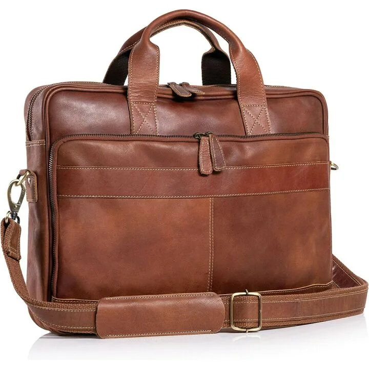 KomalC 16 Inch Leather Briefcases for Men & Women - Ideal Satchel for Office & School