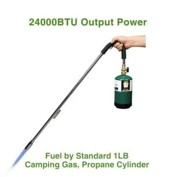 Show moreThe KOMAN Weed Torch Propane Burner is an exceptionally versatile tool designed to make outdoor tasks such as gardening, barbecuing, and ice melting a breeze. Measuring an impressive 35 inches in length, it allows for easy access while minimizing hand strain, making it perfect for everyday use. Compatible with various propane sources, it can be fueled by a 1 LB propane gas cylinder or a larger 5-40 LB propane tank using a KOMAN Converter Hose. Not only does it boast a powerful output of up to 24000 BTU, but it also incorporates self-lighting ignition for a hassle-free startup experience.