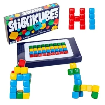 Show more Unlock your child's imagination with the exciting KOMARC GAMES StickiKubes! This innovative set of mini stacking cubes takes playtime to the next level, allowing your little ones to stick and build on virtually any surface (excluding fabric). With 36 vibrant cubes in four eye-catching colors, these non-toxic sticky blocks are designed specifically for energetic kids who love to create and explore their artistic talents.