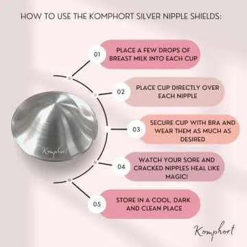 Show more Discover the perfect companion for your breastfeeding journey with the Komphort Silver Nipple Covers. Designed specifically with nursing mothers in mind, these silver nipple shields are a game-changer for those experiencing soreness or discomfort. Crafted from eco-friendly materials, each pair of silver nursing cups not only promotes healing through their soothing properties but also serves as a sustainable option for moms who are conscious of their environmental impact. With their lightweight and comfortable design, these breast covers fit all breast shapes seamlessly, making them virtually invisible under your clothing while offering vital support during this miraculous time of nurturing your child.