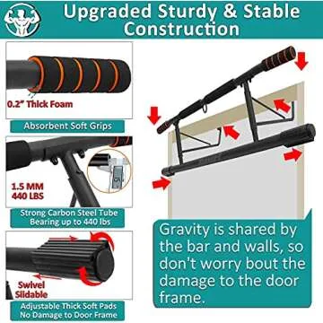 KOMSURF Pull up Bar Doorway, Door Pullup Chin up Bar Home, Multifunctional Portable Dip bar Fitness, Exercise Equipment Body Gym System No Screws Trainer