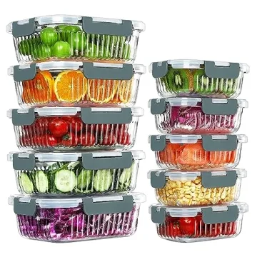 Show moreIntroducing an essential addition to your kitchen that combines style with practicality: the KOMUEE 10 Packs Glass Meal Prep Containers Set! This exceptional collection features 5 large 34 oz containers and 5 small 13 oz containers, meticulously designed to elevate your meal prepping experience. Crafted from premium borosilicate glass, these containers are not only durable but also visually appealing, allowing you to easily view your delicious ingredients. They are perfect for meal prepping, portion control, and storing leftovers, making them an ideal solution for maintaining healthy eating habits.