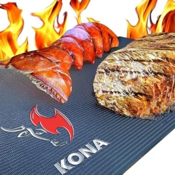 Built to withstand high temperatures up to 600 degrees Fahrenheit, this mat offers resilience and reliability, ensuring it retains its original size and shape even under intense grilling conditions. At a thickness of 0.39mm, it is four times thicker than typical mats, promising you up to 1,000 uses per side. Whether you’re grilling juicy steaks, tender chicken, or sautéing vegetables, the Kona XL Grill Mat excels in all tasks, helping you produce restaurant-quality meals.