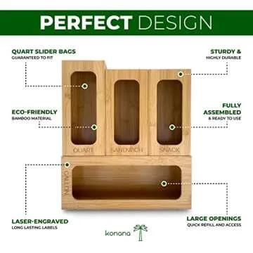 Konana Wooden Storage Bag Organizer for Plastic Baggies - Individual Gallon, Quart, Snack & Sandwich Organizer - with Labels for Kitchen Organization
