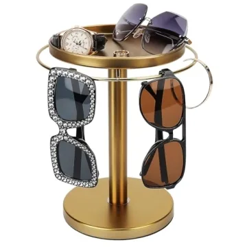 Show moreIntroducing the KONDYFAYO 360° Rotating Sunglass Organizer, the epitome of modern organization and functionality for your eyewear. This exquisite storage solution is not only a stylish addition to your home but also a must-have for anyone seeking to keep their sunglasses and jewelry neatly arranged. With the capacity to hold between 9-12 pairs of sunglasses securely, it provides a safe harbor for your prized possessions while allowing for easy access to all your favorites. Constructed from durable metal, this organizer features a weighted base ensuring stability and a 360-degree rotation that makes picking out the perfect pair of shades a breeze.