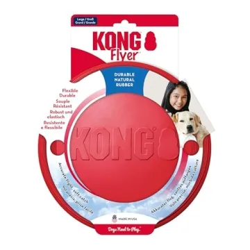 Show more Introducing the KONG Flyer, the ultimate frisbee designed especially for your furry companions! This innovative flying disc isn't just another toy; it's a carefully crafted blend of durable KONG Classic Natural rubber and superior design, ensuring that it can endure even the most boisterous play sessions. Engineered specifically for dogs, the KONG Flyer guarantees a safe and comfortable catch while promoting hours of fun and exercise. Thanks to its unique dynamic rebound feature, it brings an exciting twist to every game of fetch; even if your pup misses, it bounces right back to keep them engaged and energized.