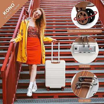 Kono Luggage Set 4 Piece Carry On Hardside Luggage with TSA Lock Spinner Wheels Carry On Suitcase Cream White