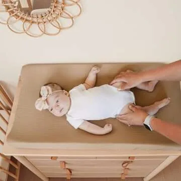 Konssy Muslin Changing Pad Cover for Baby Girls Boys, 100% Cotton Fitted Diaper Chang Table Covers, Soft Breathable Changing Pad Sheets, 2 Pack (Camel,Sun)