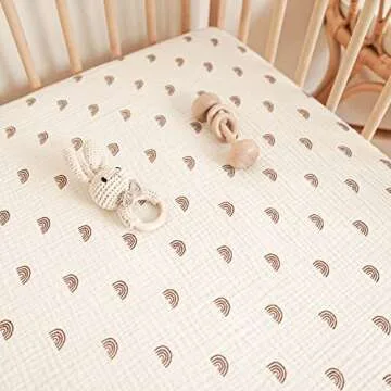 Konssy Muslin Crib Sheets for Girl Boy, Soft and Breathable Cotton Baby Sheets for Standard Crib Mattress, 52"x 28" (Rainbow)