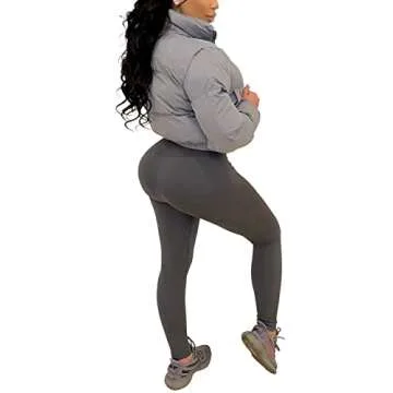 KOOBETON Women's Warm Lightweight Packable Puffer Jacket Cropped Winter Zip Up Short Bubble Puffy Coats Grey L