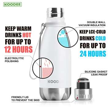 koodee Water Bottle-9 oz Stainless Steel Double Wall Vacuum Insulated Water Bottle, Cola Shape Leak Proof Sports Bottle for School (White)