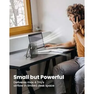 Show more Introducing the Koonie USB Desk Fan – your ultimate companion for personal comfort and convenience! Designed with a powerful 7-blade system, this compact fan provides optimal air circulation with a commendable maximum airflow of 15.4ft/s. Whether you’re working at your desk, relaxing in your bedroom, or enjoying a remote workday, this fan ensures you maintain a comfortable, cool environment no matter the weather outside.