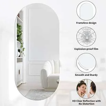 Koonmi Frameless Bathroom Mirror 20"x47", Oval Wall Vanity Mirror for Bedrooms, Entryways, and Living Rooms, Rectangle Mirrors for Wall Hangs Horizontal or Vertical