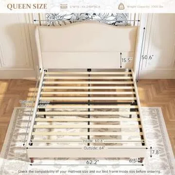 koorlian Queen Size Bed Frame Upholstered Platform Bed with 51" Tall Headboard Wingback, Soft Fabric, Retro Simple Style Platform Bed No Box Spring Needed, Easy Assembly, Beige
