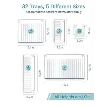 Kootek 32 Pcs Drawer Organizer Set, 5-Size Bathroom Vanity Trays Makeup Desk Dividers Versatile Storage Bins Clear Plastic Container for Dresser, Bedroom, Kitchen, Office