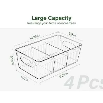 The Kootek bins are not only practical, with a size of 10.23 x 5.9 x 3.54 inches, but they also come with removable dividers that let you customize compartments based on your needs. No matter how diverse your groceries are, you can create specific sections for different items, ensuring that everything has its place.