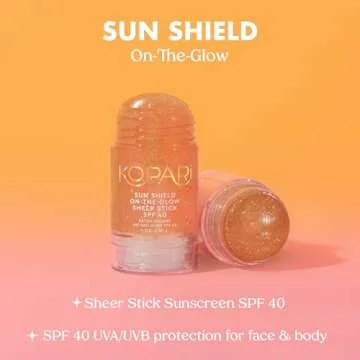 Kopari Sun Shield On-The-Glow Sheer Sunscreen Stick SPF 40, Sweat and Water Resistant Roll On Sunscreen For Face and Body with Vitamin E and Bisobolol, 1oz