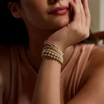 koperin Trendy 14K Gold/Silver Plated Stretch Bead Bracelets - Dainty Stack Bracelet 6.5In for Women
