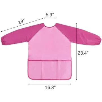 Kopokita Kids Art Smock, Kids Painting Apron, Waterproof Children Artist Smock with Long Sleeve with 3 Pockets for Toddlers Age 2-6 (Pink)