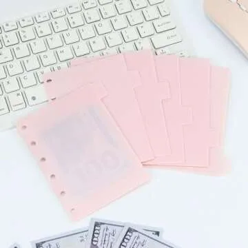 Show moreIntroducing the Koqye A7 Cash Envelope Set - the perfect solution for anyone looking to manage their finances with style and ease. Each package contains 2 sets of 6 vibrant pink tabs designed to not only organize your cash but also to add a pop of color to your budgeting. Measuring at a compact size of 4.5 x 3.2 inches, these side-open cash budget envelopes are meticulously crafted from high-quality, water and tear-resistant Translucent Polypropylene (PP) material, ensuring that your important documents remain protected and secure over time. Whether you're a student, a business professional, or an artist, these envelopes are versatile enough to meet all your organizational needs.