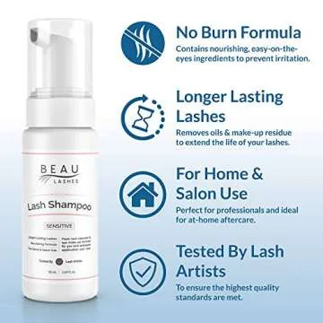 Korean Eyelash Extension Foam Cleanser Shampoo & Brush (50ml) - Oil Free Sensitive Paraben & Sulfate Free Eyelid/Lash Foaming Wash Cleaner To Remove Makeup & Mascara - Ideal For Salons And Home Care